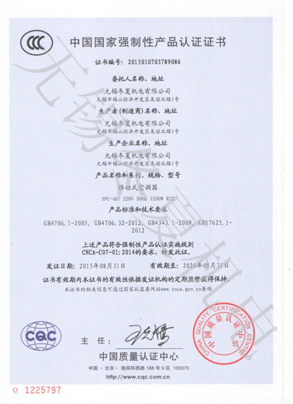 近日,米兰体育在线网站-米兰(中国)的移动工业冷气机、暖风机产品7个型号取得了中国质量认证中心颁发的3C强制认证证书。