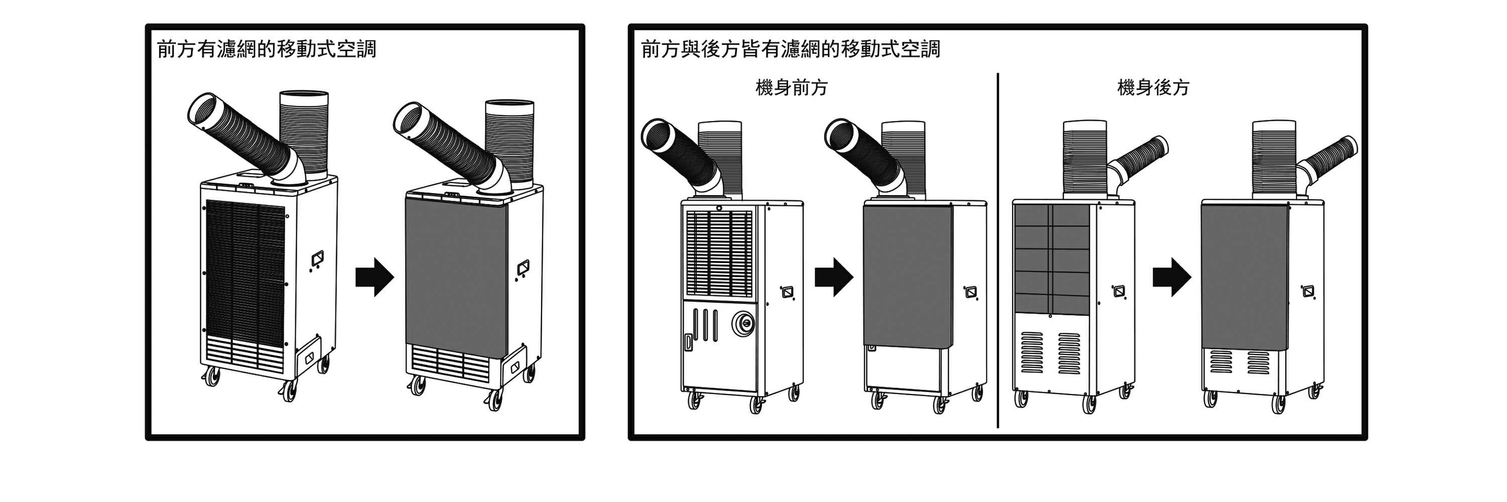 ※ 原先安装在移动式空调上的滤网请直接使用,不需移除。